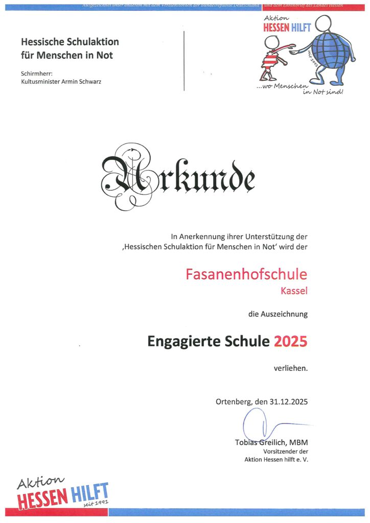 Schön, dass sie unsere Onlinepräsens der Fasanenhofschule Kassel gefunden haben. Hier finden sie viele Informationen und Veröffentlichungen rund um unsere Schule. Ein täglicher Blick lohnt sich.